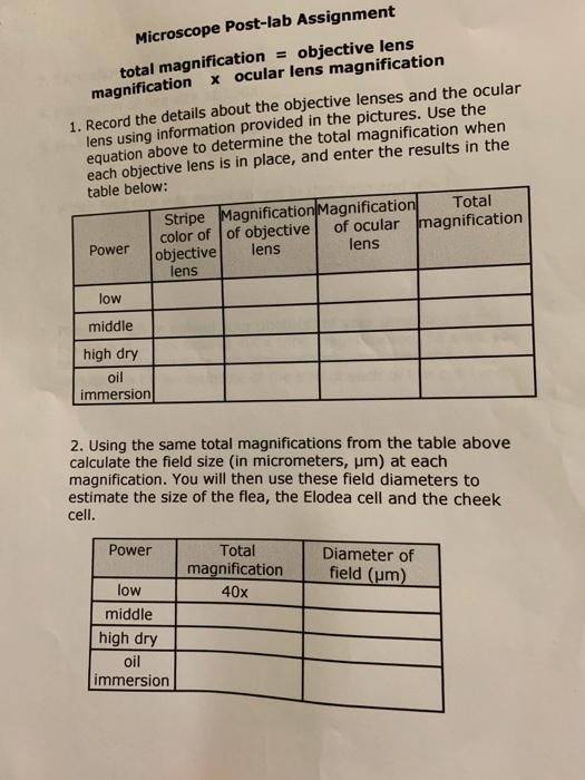 Solved Microscope Post Lab Assignment Total Magnification Chegg Com
